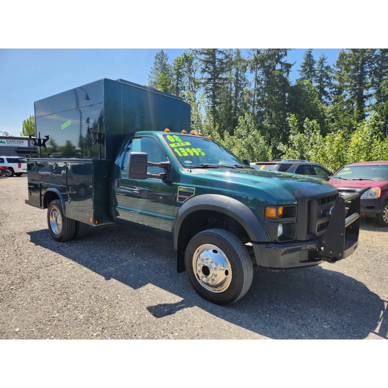 Look no further if you are need of a work-fleet vehicle. We have a F-450 XL Super duty 4x4 . It's is powered by a 6.8 L V-10 Triton. The box has tons of room for storage inside and out. There are no doors for the rear at this time